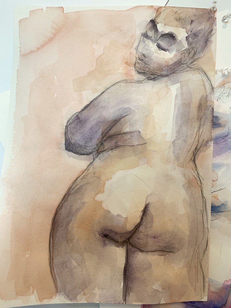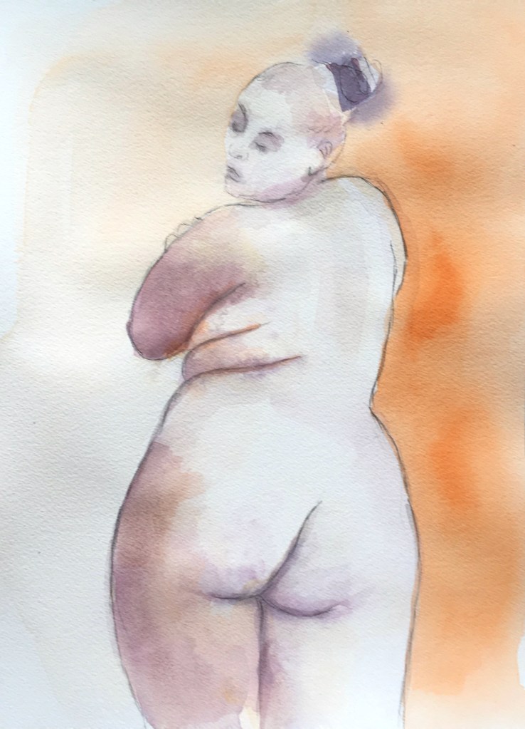 During the Covid lockdowns, spending so much time at home, I needed to find a way to work quick and small on a little home desk, so I did lots of drawings, but also started trying out watercolours.