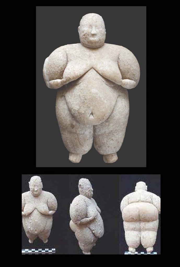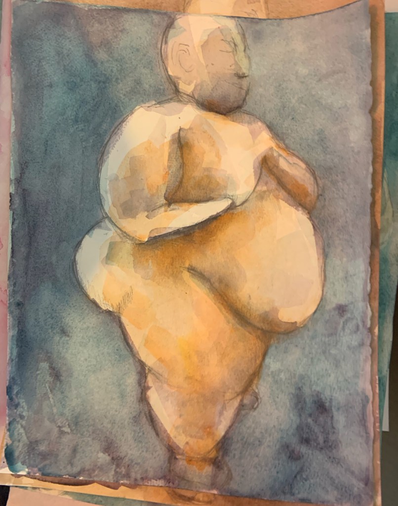 At first I was using the Venus of Willendorf as my main model, but then I happened on this little figurine found in Turkey by archeologists – they think she’s about 8000 years old.